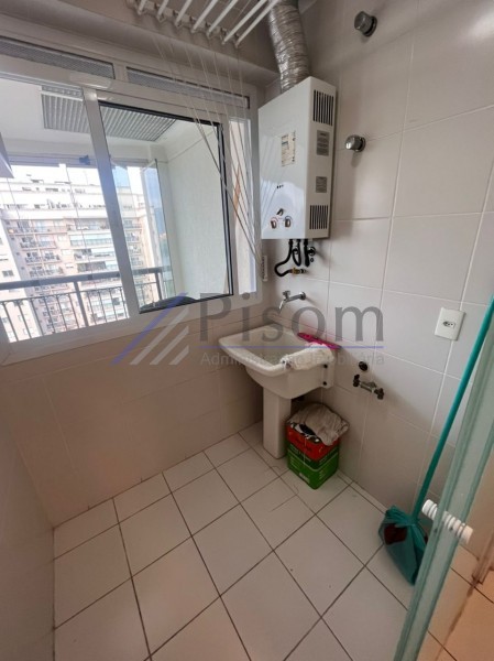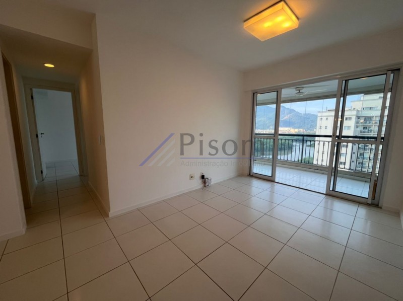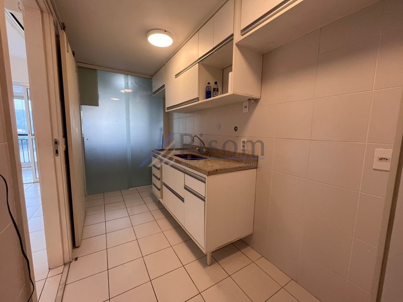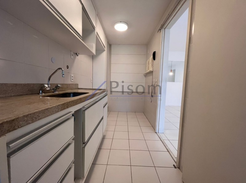 Imóvel de 79m², composto por sala, cozinha, área, varanda com cortina de vidro, 01 banheiro social e 2 quartos, sendo 1 suíte.