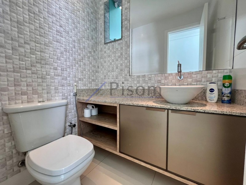 A sala ampla proporciona flexibilidade de layout e o lavabo agrega praticidade. A cozinha é espaçosa, com área de serviço e dependência completa. São 3 suítes climatizadas, sendo uma utilizada como escritório, ideal para home office.